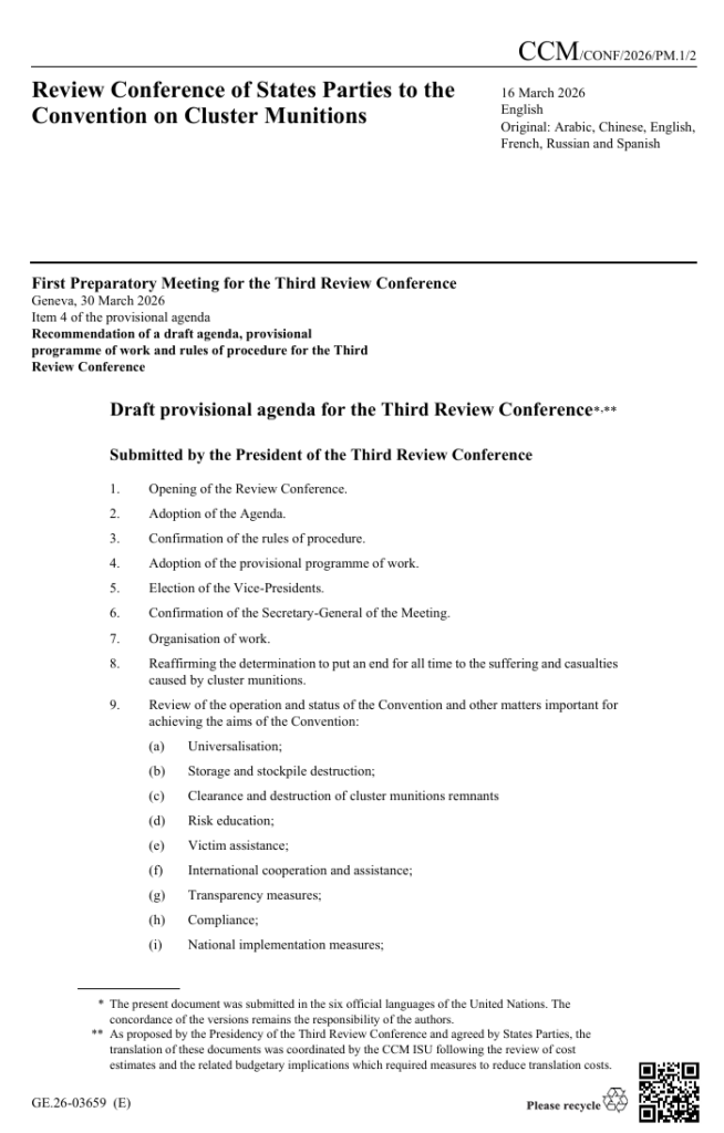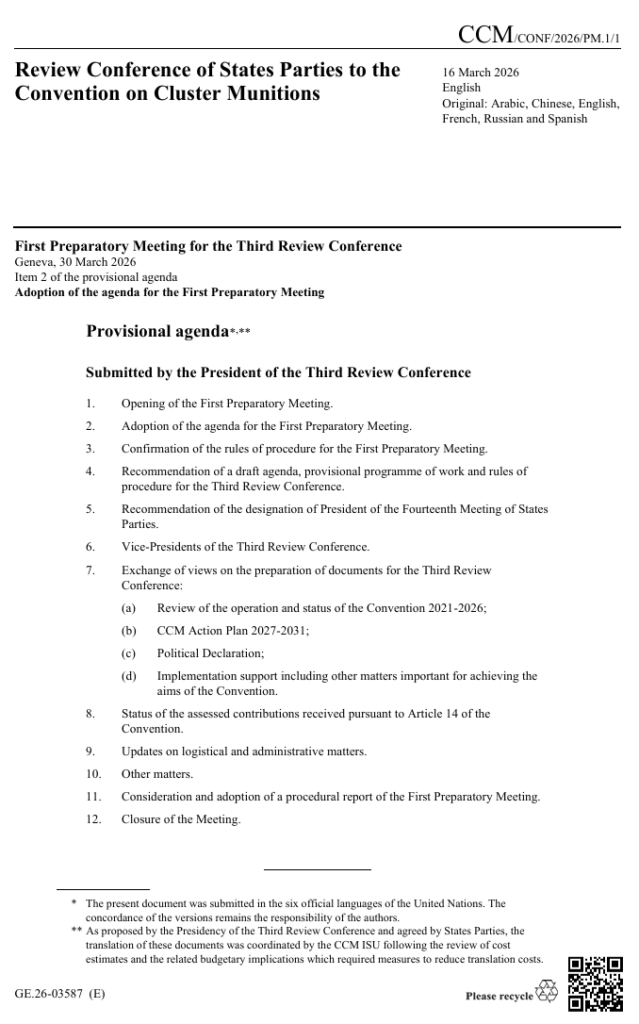 3RC First Preparatory Meeting: Review Conference Draft Agenda